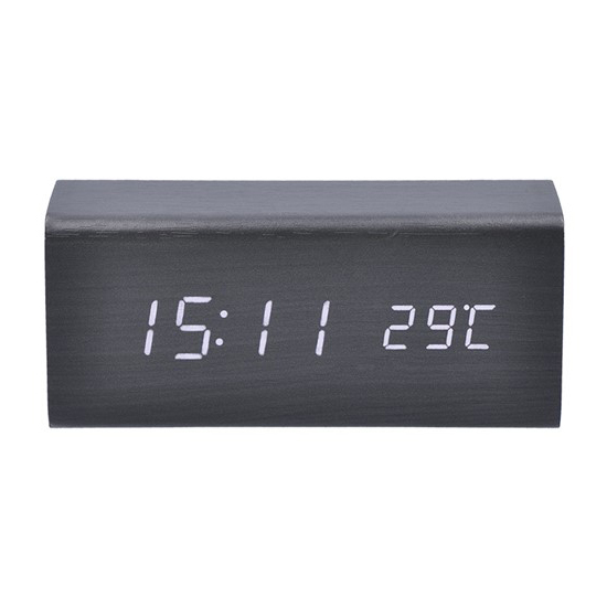 Inovativní funkce probuzení třeba tlesknutím (nebo jiným zvukem) vás spolehlivě vytáhne z režimu spánku, aniž byste museli hledat tlačítka. Zabudovaná baterie uchovává nastavení i při výpadku napájení, takže se nemusíte obávat ztráty času. Hodiny mají elegantní dekor černého dřeva, který dodá vašemu prostoru příjemný a sofistikovaný vzhled.