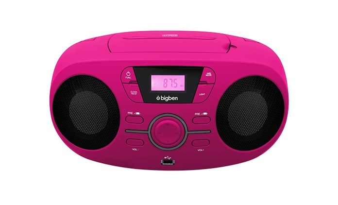 Přenosný CD / MP3 přehrávač s FM rádiem a USB vstupem. Součástí jsou dva vestavěné reproduktory vybavenými LED diodami pro světelné efekty.