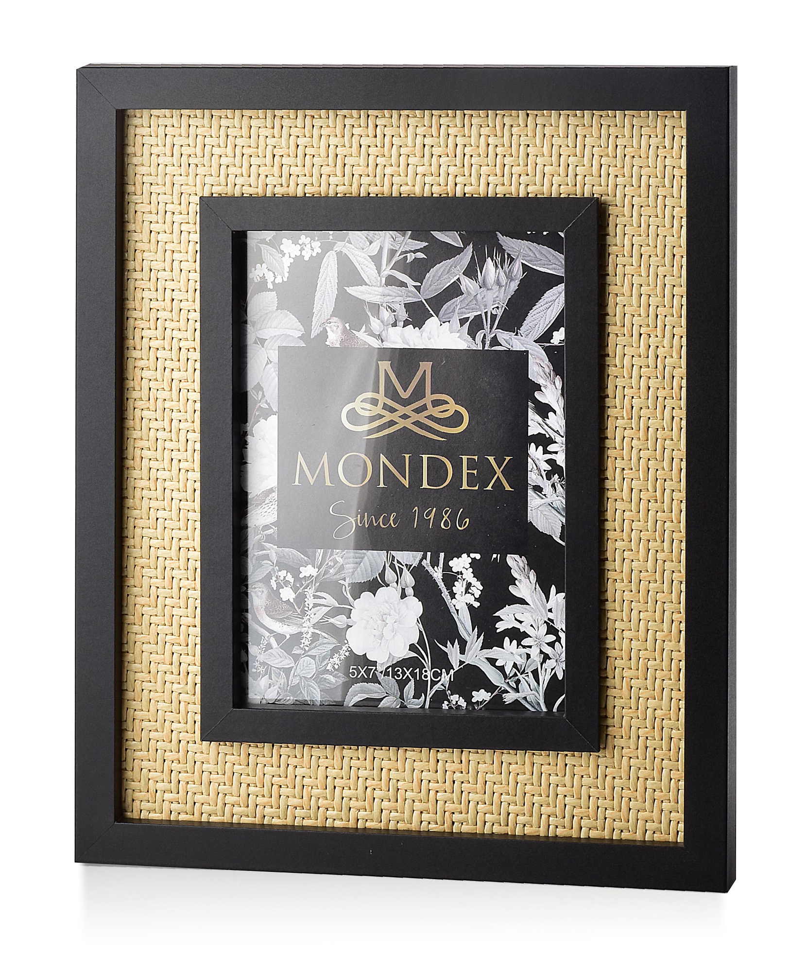 Ramka na zdjęcia z serii ADI marki MONDEX. Wykonana z MDF-u. Rama jest w kolorze czarnym wypełniona plecionką w kolorze beżowym, słomkowym. Rozmiar zdjęcia to 13x18cm. Ramkę można postawić jak również powiesić w pionie lub poziomie. Zapakowana jednostkowo w folię. Wymiar całości: DŁUGOŚĆ ł 28.00 cm SZEROKOŚĆ ł 23.00 cm WYSOKOŚĆ ł 2.00 cm