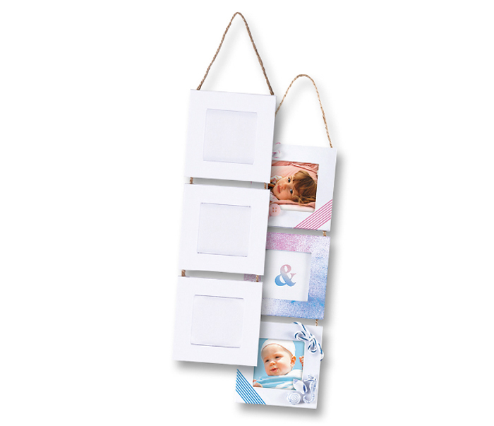 Fotorámeček vyrobený z bílé lepenky, složený ze tří kusů pro zavěšení. Vhodné pro kreativní dotvoření dle vlastních představ.Rozměr rámečku: 75 x 75mm číst celé
