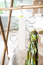 Ramínko na šátky je vyrobeno z lotusového dřeva, které vyniká odolností. Do dřeva jsou zapuštěny kovové háčky s oky, do kterých snadno umístíte malé i větší šátky. Oka mají na konci chrániče z plastu, aby nedošlo k poškození tkaniny. Na ramínku je 8 háčků pro zavěšení. Doplňující informace rozměry ramínka jsou 17,5 cm x 1,2 cm x 31,5 cm barva bílá