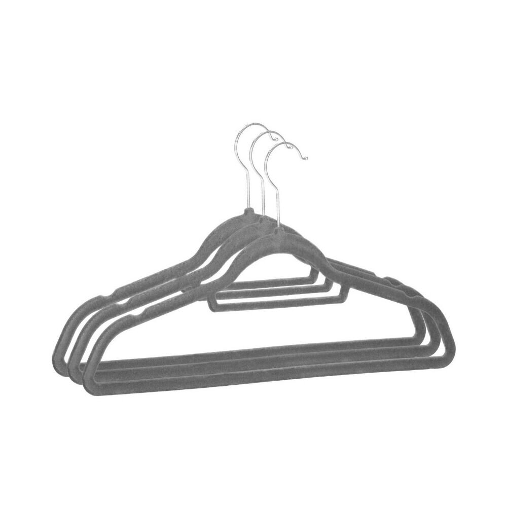 Praktické a elegantní ramínka, která zabrání sklouzávání oblečení. Tato sada tří šedých velurových ramínek s otáčecím kovovým háčkem o 360° je ideální volbou pro každou skříň. Díky speciální velurové úpravě a praktickým prohlubním na bocích ramínka bezpečně drží halenky, košile, saka i šaty, aniž by se sklouzávaly nebo poškozovaly.