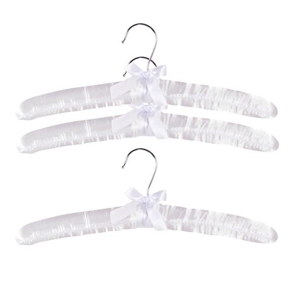 Ramínko dřevo/satén - sada 3 ks. Oblíbené, luxusní, šatní ramínko polstrované saténem, pro ty nejvzácnější šaty a oblečení. Ramínko je precizně polstrováno jemným saténem, hojně také využíváno v prestižních svatebních salónech a buticích. Doporučujeme také pro ty nejvzácnější i nejoblíbenější, drahé kousky ve vašem šatníku. Rozměry - 38 x 14 cm. Barva bílá.