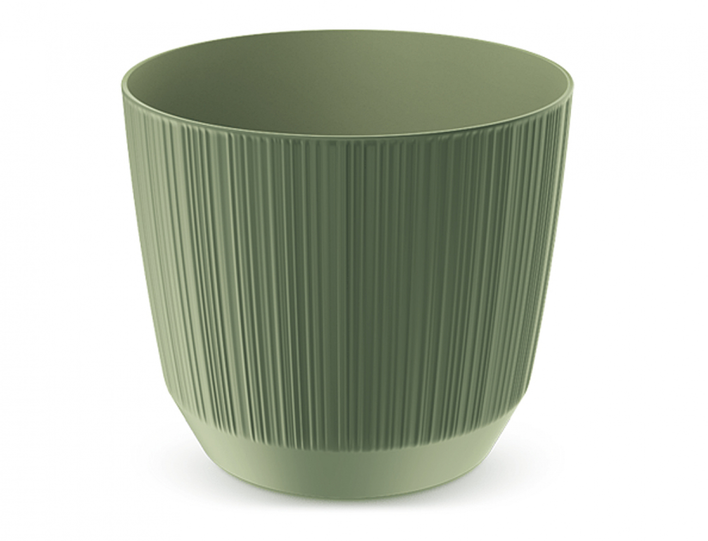 Plastový, matný obal na květináč s podélnými drážkami po celém obvodu a hladkým pruhem v oblasti dna. Zajímavý, hravý design rozbije monotónnost v jakémkoliv prostoru. Kruhového půdorysu. 100% recyklovatelný (plast, žlutý kontejner). Vhodné do interiéru i exteriéru. UV stabilní. Rozměry: průměr...