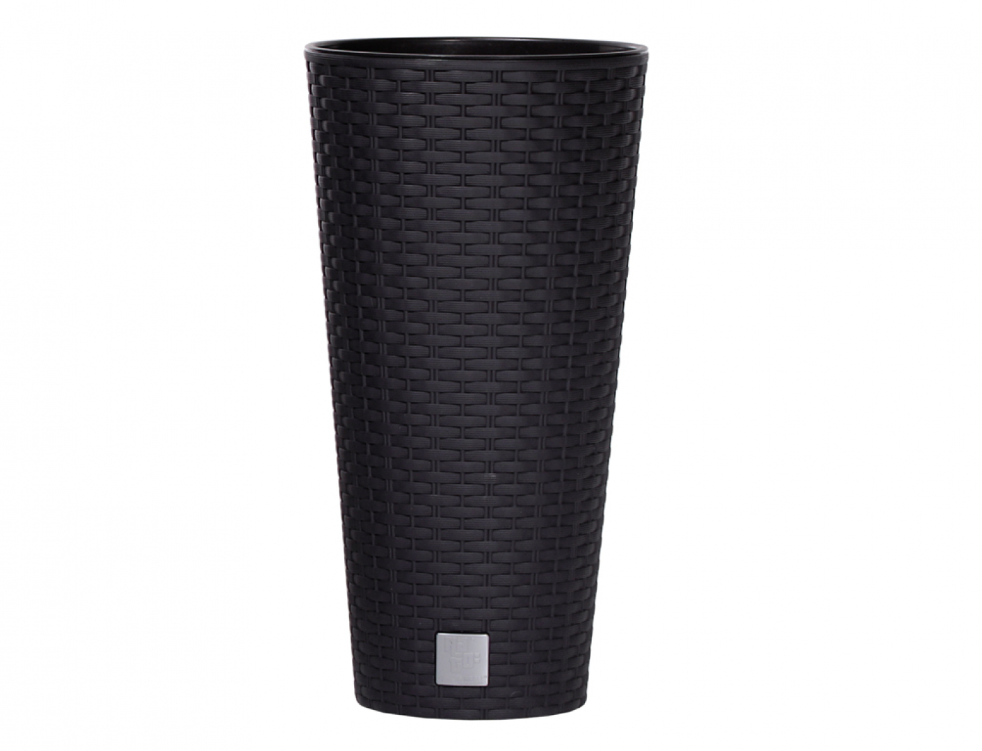 Kulatý plastový obal na květník s texturou imitující ratanový výplet. Tento obal je skvělým doplňkem stylových interiérů. Je vhodný do interiéru i exteriéru, je odolný vůči UV záření. Součástí je černá vnitřní vložka. Barva: antracitová. Průměr: 25 cm, výška: 22 cm. číst celé