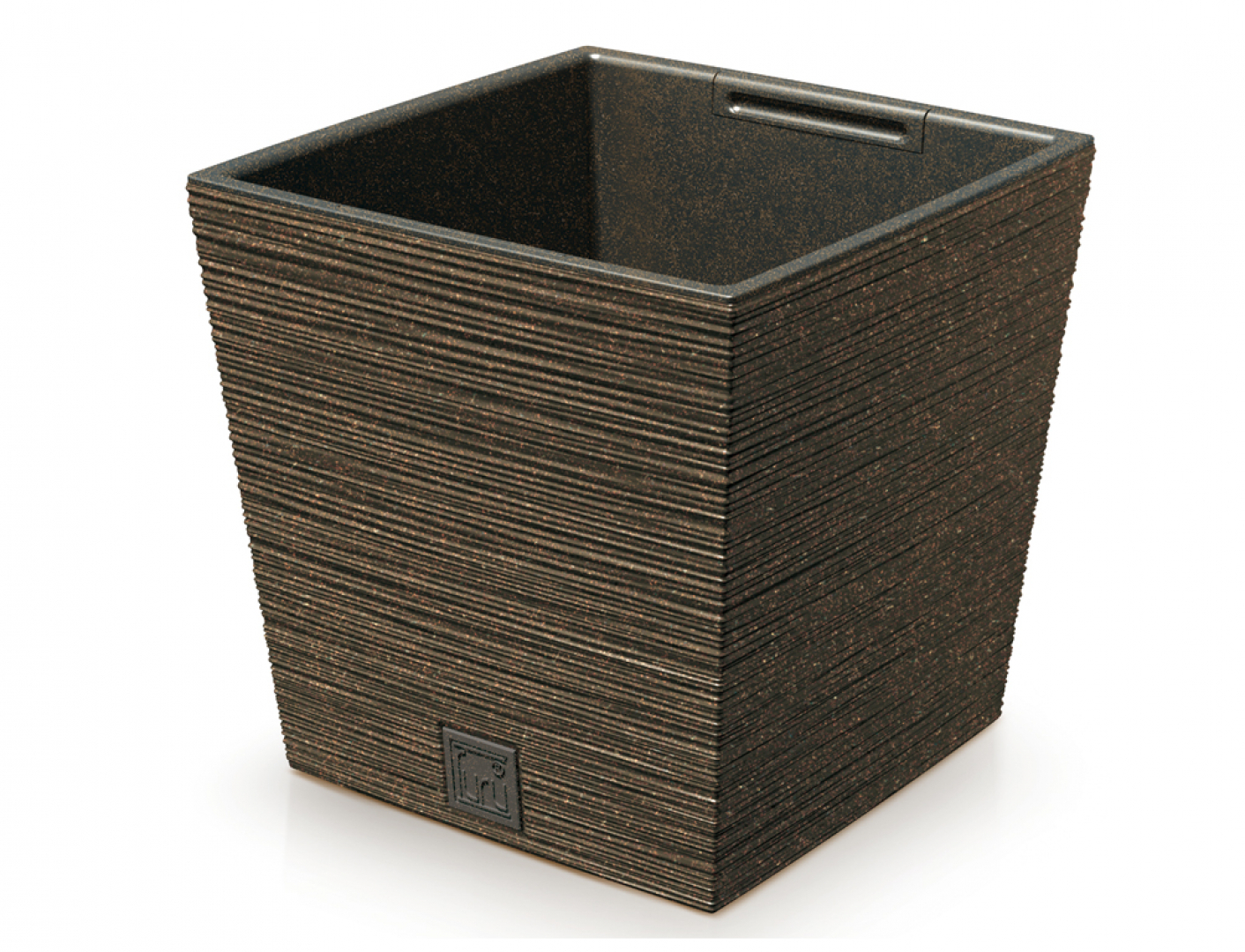 Tento moderní, čtvercový obal na květináč spojuje praktickou funkčnost s estetickou hodnotou. Vyroben je z plastu kombinovaného s až 33 % dřevěného materiálu, což mu propůjčuje originální zemitý vzhled a vyšší biologickou rozložitelnost. Povrch obalu je matný a strukturovaný jemnými zvlněnými drážkami, které mu dodávají hravost a robustnost.