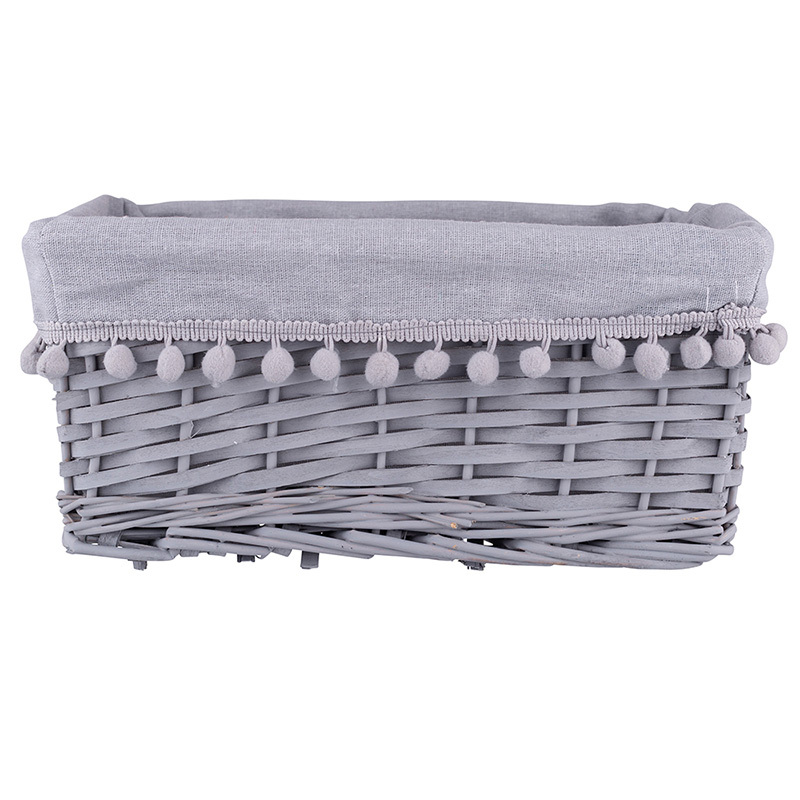 ŠEDÝ KOŠÍK S POMPONKY 36X27X16CM
