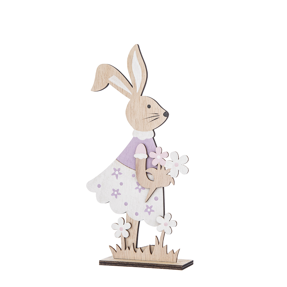 DŘEVĚNÁ FIGURKA ZAJÍC S KVĚTY 10X4X20.5CM