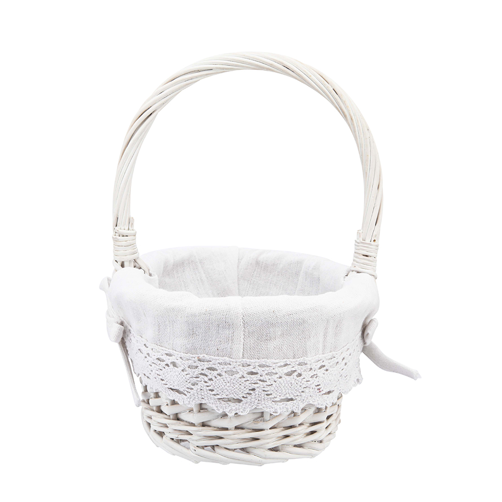 PROUTĚNÝ KOŠÍK KULATÝ S BÍLOU VÝSTELKOU A UCHEM 20X12 (28)CM