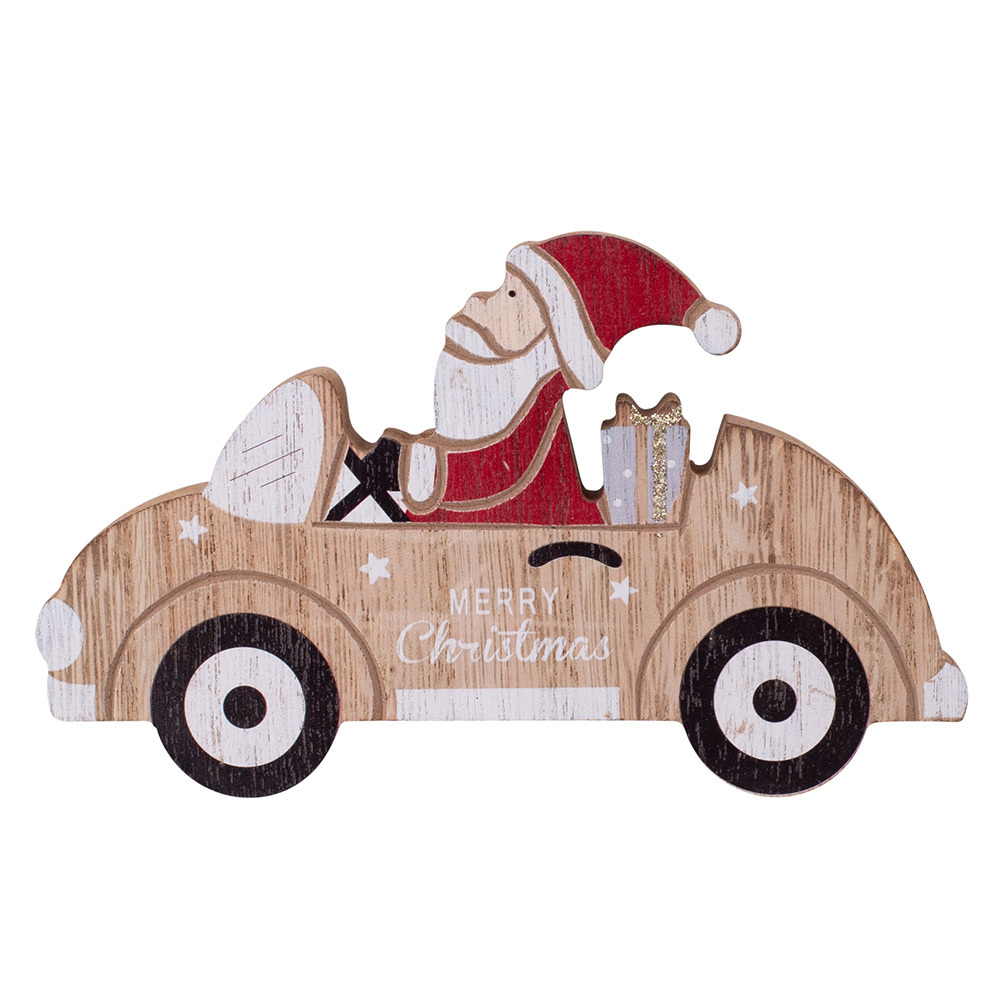 DŘEVĚNÁ FIGURKA MIKULÁŠ V AUTĚ 16X9.5X2CM