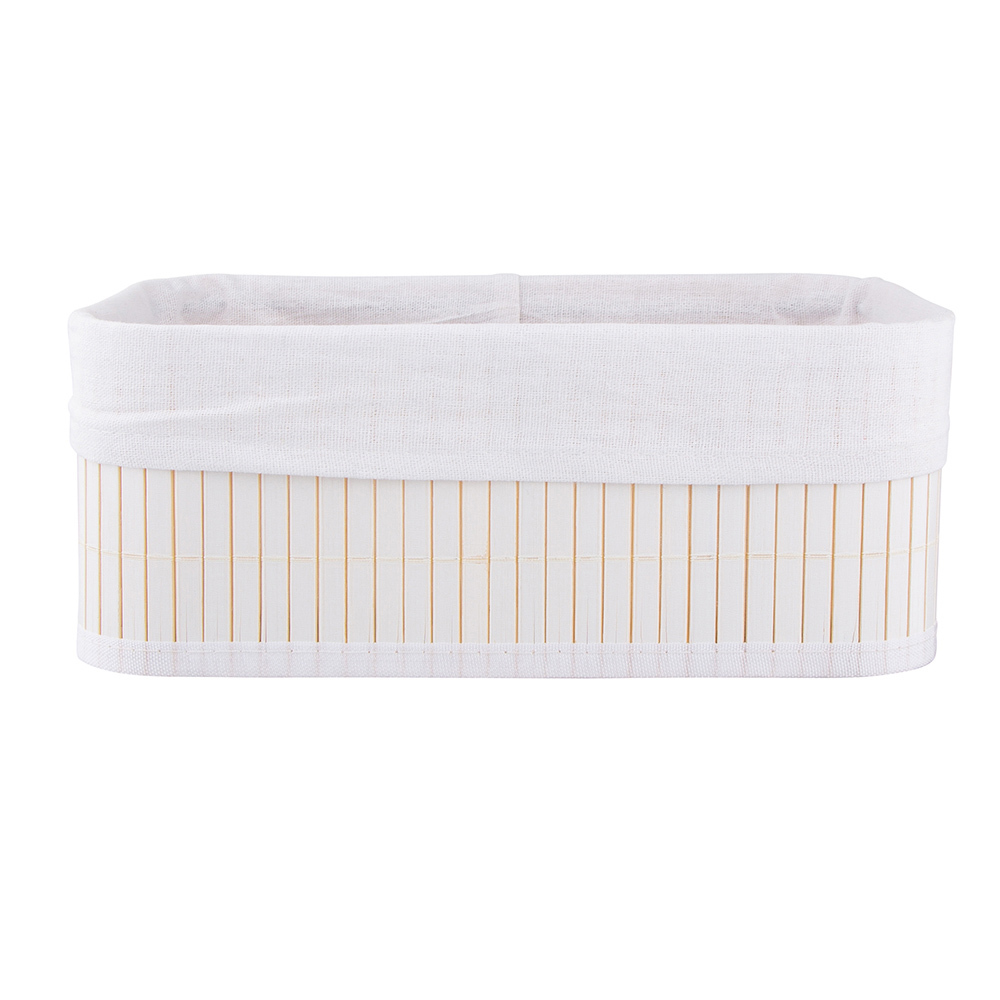 BAMBUSOVÝ KOŠÍK S BÍLOU VÝSTELKOU 30X20X12CM