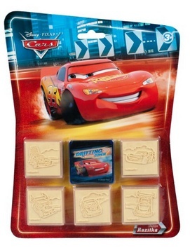 Balení obsahuje pět dřevěných razítek velikosti 4,5 a 4,5 cm se samolepkami postaviček na držátkách a barevnou inkoustovou poduškou.