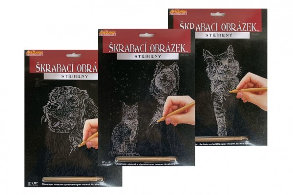 Škrabací obrázek stříbrný zvířátko 20,3x25,4cm 3 druhy na kartě