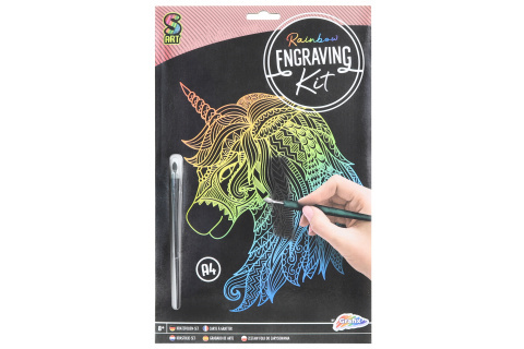 Vyškrabávací obrázek s obrázkem jednorožce. Balení obsahuje vyškrabávací obrázek, 2 zkušební kartičky, podložku a vyčkrabávací pero. Rozměr balení cca 33 x 21 x ,05 cm. Věk 8+