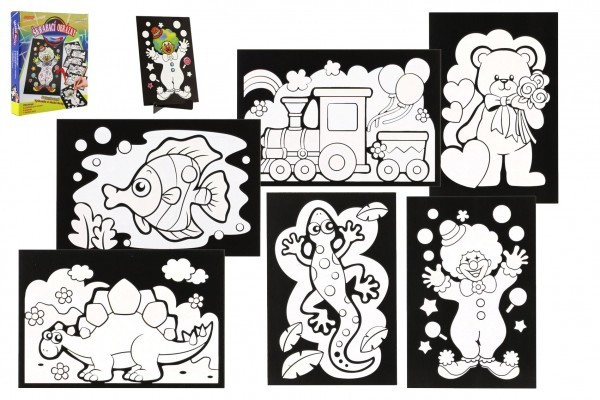 Škrabací obrázek 6ks barevný + 6ks stojánků v krabici 19x22x6,5cm