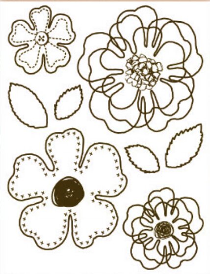Gelová razítka - Kroucené obrysové kytky a lístečky