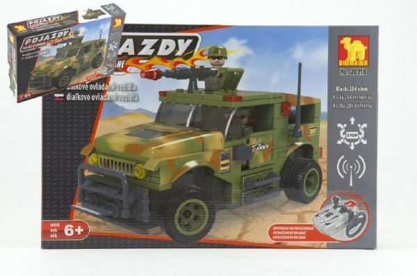 Stavebnice Dromader Vojáci Auto RC 20218 na vysílačku na baterie 284ks v krabici 37x24x7cm