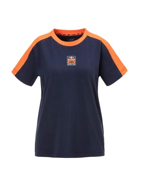 Dámské tričko z oficiální kolekce KTM Red Bull Racing. Dámské tričko KTM v tmavě modrém provedení. Týmové logo i barvy.