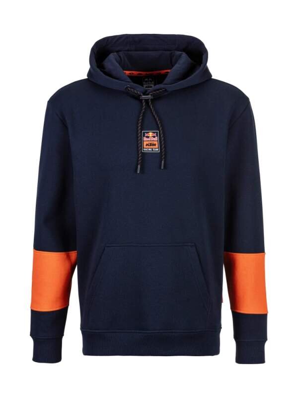 Volnočasová mikina s kapucí z oficiální kolekce KTM Red Bull Racing. Tmavě modrá mikina s jedinečným potiskem na zadní straně, prostřední kapsa. Týmové logo i barvy.