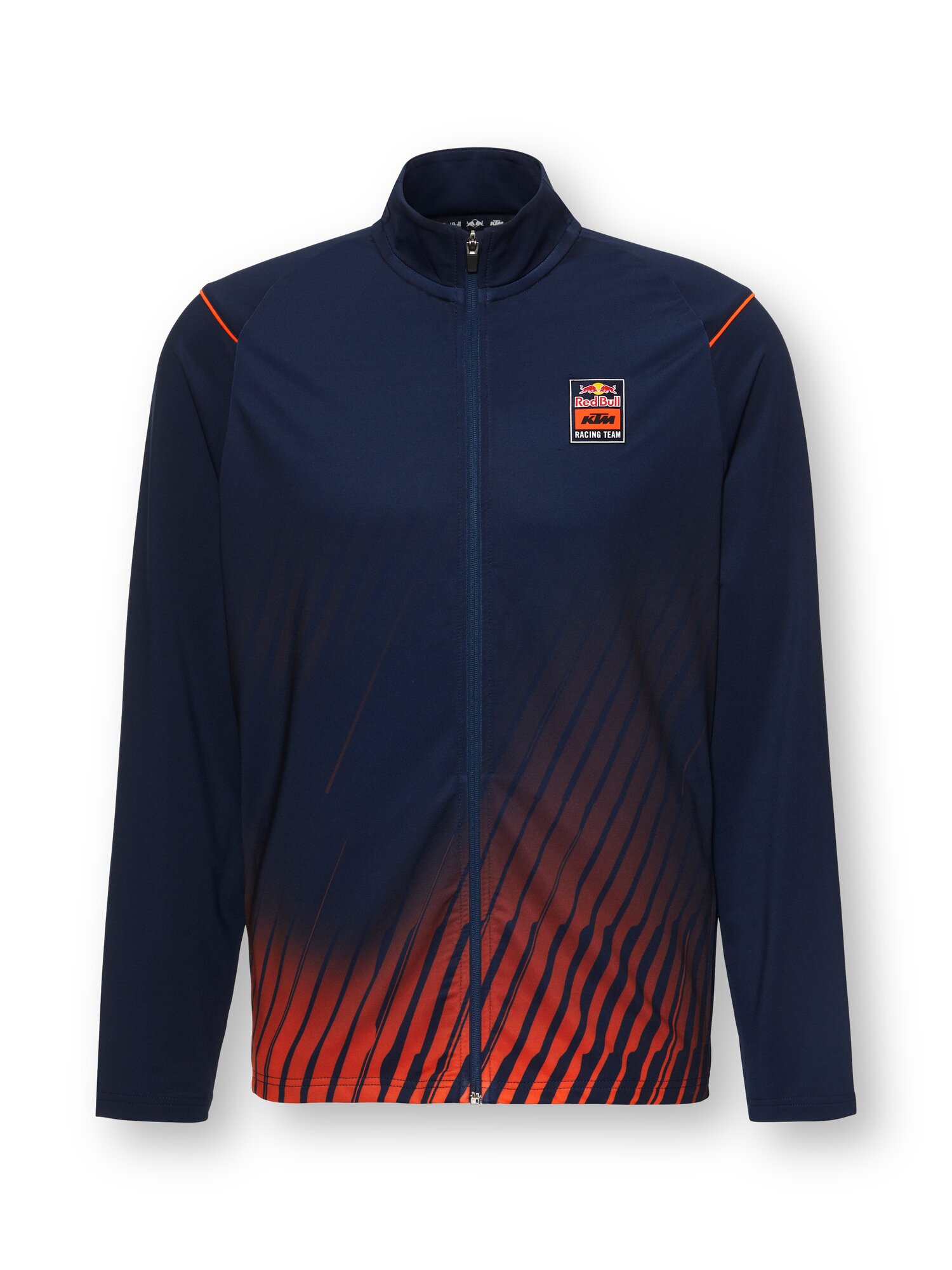 Sportovní větrovka KTM Red Bull Racing z nejnovější volnočasové kolekce. Větrovka KTM doplněná oranžovými prvky a logem KTM Red Bull Racing.