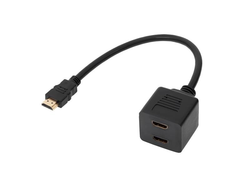 Adaptér rozděluje jeden signál HDMI na dva přijímače (kvalita obrazu závisí přímo o přenosových schopnostech hardwaru a může se lišit v závislosti na použitém vybavení)