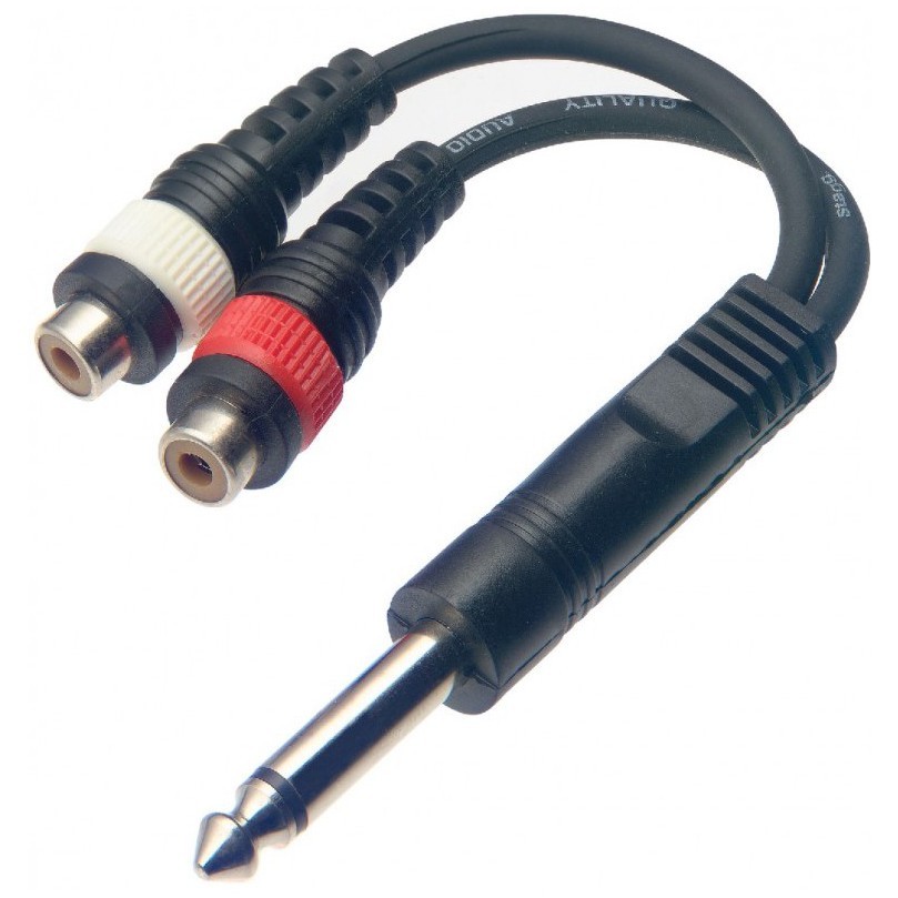 Stagg YC-0,1/1PM2CFH, redukce Jack 6,3 mm mono samec – 2x Cinch samice
