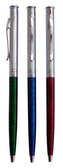 Pero je vybaveno otočným mechanismem pro snadné vysunutí náplně a výměnu dle potřeby. Jeho lesklé barevné kovové tělo v kombinaci se stříbrnými doplňky působí velmi elegantně a dodá vašemu psaní prestižní nádech. Dodává se s modrou náplní, která je vhodná jak pro běžné, tak i profesní použití. Praktickým bonusem je dárková krabička, ve které je pero uloženo, a také dárková taška Regal - ideální pro osobní i firemní dárky.