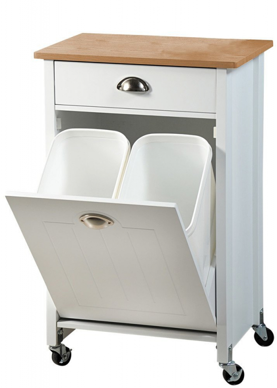 Kuchyňský regál s odpadkovými koši na tříděný odpad. číst celé