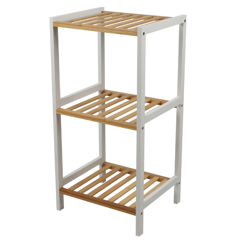 Police, regál se 3mi policemi, stojací regál z bambusu, kombinace bílé a dřeva, rozměry: 35x30x70cm, vhodný do obývacího pokoje, koupelny, kuchyně či předsíně.