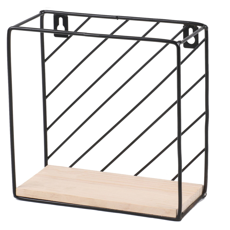 DOCHTMANN Nástěnná police čtverec 19 x 19 x 9cm, kov, dřevo, černá