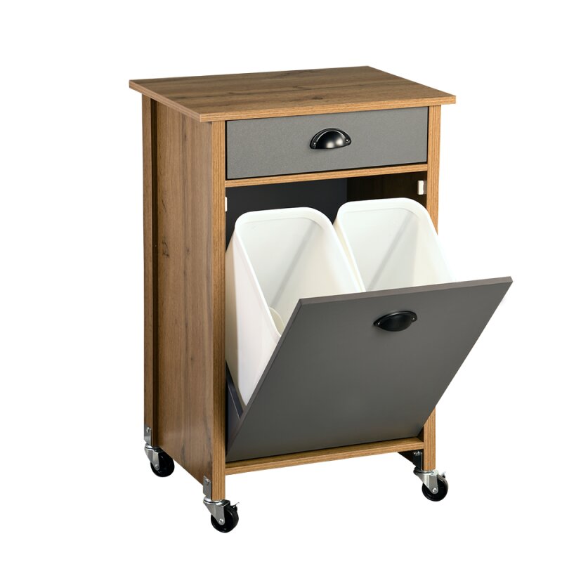 KESPER pojízdný kuchyňský regál s odpadkovými koši je praktickým a stylovým řešením pro organizaci a třídění odpadu v kuchyni. Praktický pojízdný kuchyňský regál je vyroben z kvalitní dřevotřísky z odpovědně obhospodařovaných zdrojů.