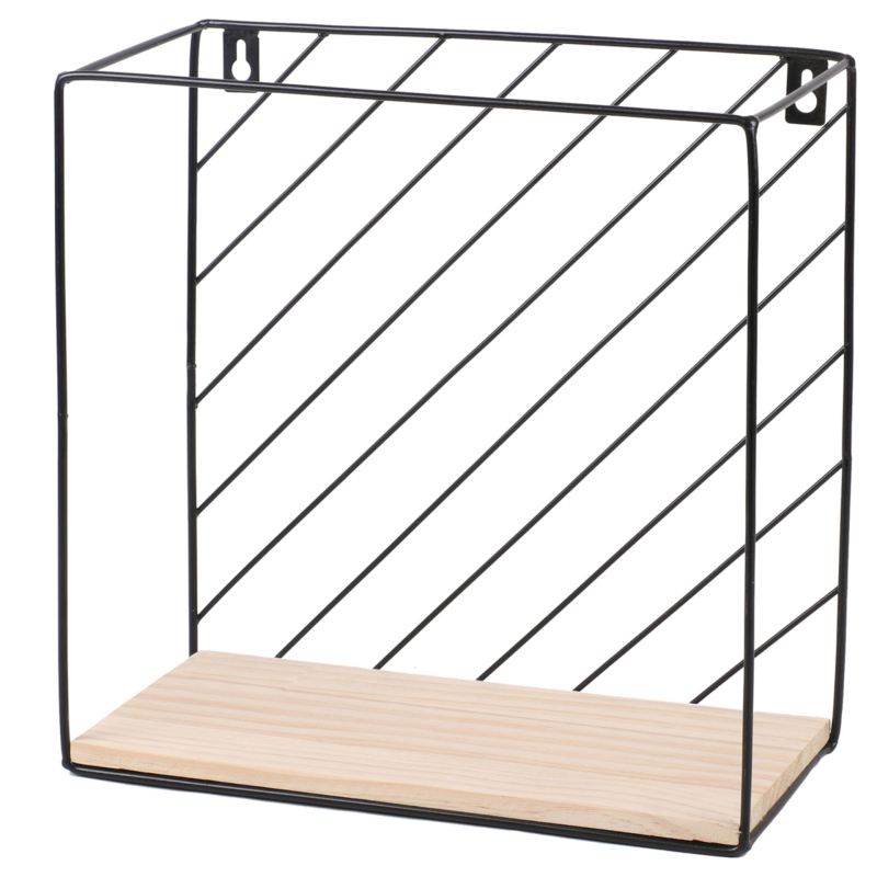 DOCHTMANN Nástěnná police čtverec 28 x 28 x 14cm, kov, dřevo, černá