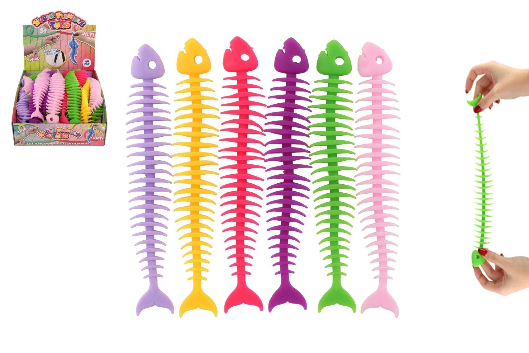 Hračka antistresová rybí kostra natahovací silikon 25cm 5 druhů 40ks v boxu
