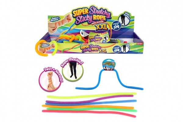 Tato elastická guma o délce 50 cm je zdobená třpytivými glitry v šesti barevných variantách, které zaujmou každého milovníka barev a lesku. Můžete ji mačkat, natahovat a různě tvarovat podle své fantazie - díky své pružnosti a designu vás nikdy nepřestane bavit.