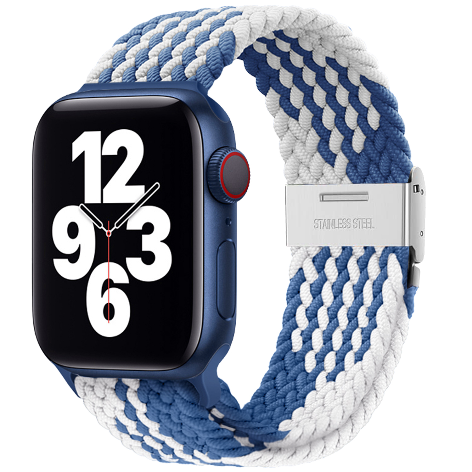Pletený řemínek pro Apple Watch 42/44/45/46/49mm,Modro-bílý