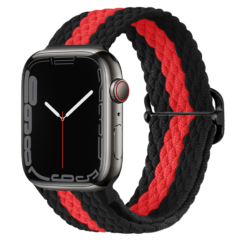 Pletený řemínek se sponou pro Apple Watch 42/44/45/46/49mm,Černo-červené