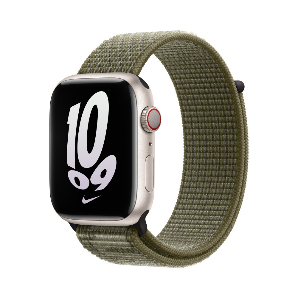 Apple Watch 45mm sekvojovozeleno/platinový Nike provlékací sportovní řemínek