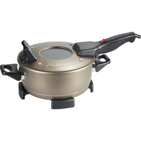 Horní část víka je vyrobena z nerezového plechu a potažena nepřilnavých povrchem Teflon® Select barvy Champagne Gold