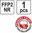 Filtrační protiprašná maska opatřená zpětným ventilem s třídou ochrany P2 podle normy EN149: 2001 + A1:2009 FFP2 / NR / PZ.