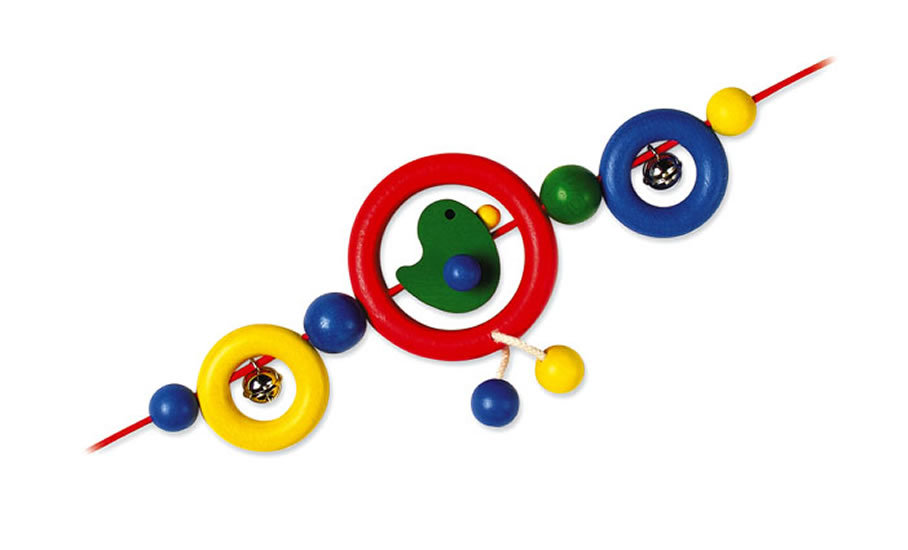 Děti vnímají svět všemi smysly, často také pusinkou. Naše výrobky pro nejmenší jsou z netoxických materiálů i barev a tedy zdravotně naprosto nezávadné. Snadno se udržují - stačí vlhký hadřík.Závěs do kočárku s dřevěnou kachničkou uprostřed zaujme dítě pestrými barvami, veselými motivy i zvukem rolniček. Podporuje reflexy a přispívá k rozvoji nových dovedností. Vhodné od prvních měsíců.