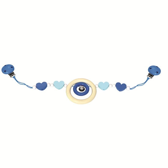 Dřevěný řetěz do kočárku s rolničkou, k podpoře psychomotorického vývoje dítěte. Délka: 59 cm číst celé