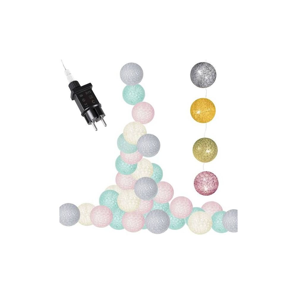 Elegantní světelný řetěz s bavlněnými koulemi, které jemně prosvítí interiér a vytvoří příjemnou sváteční atmosféru. Adaptér na bezpečné napětí, ultra úsporné led diody. Délka světelné části 6 m, napájecí kabel 1,5 m. Barevné koule se stálým světlem teplé bílé barvy, 30 led.
