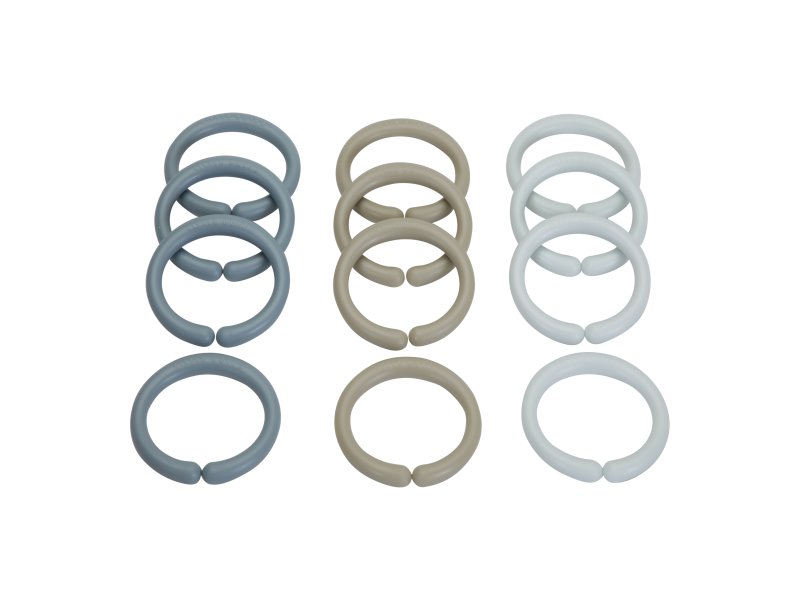 Multifunkční kroužky tvořící po spojení řetěz slouží jako hračka pro děti i jako pomůcka pro připevnění hraček ke kočárku či autosedačce. Dvanáct kroužků vytvoří řetěz ideální délky pro použití v kočárku.