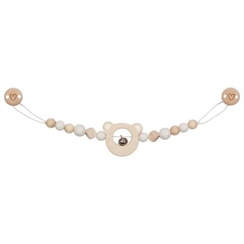 Dřevěný řetěz s medvídkem, rolničkou a celou řadou korálků představuje skvělou hračku k zabavení miminka při jízdě v kočárku, nebo v autosedačce. Neposedné perličky upoutají pozornost dítka raz dva.