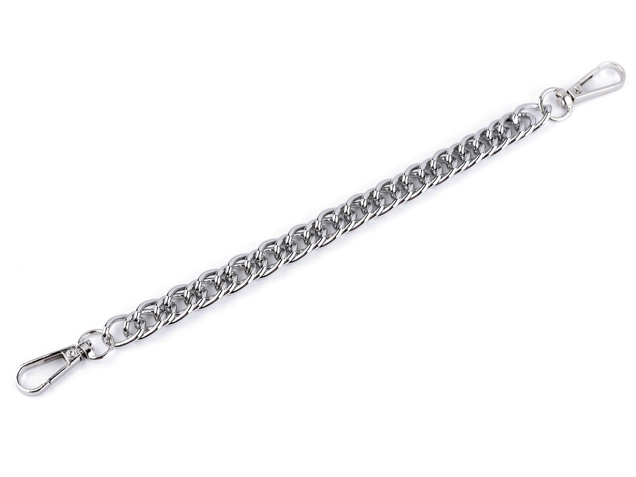 Tento krátký kovový řetízek je vybaven karabinkami na obou koncích, což umožňuje snadné připnutí a také rychlé odpojení. Využijete ho například jako stylové ucho nebo praktický držák, kdykoli potřebujete kabelku připevnit na jiný popruh nebo ji jednoduše zavěsit. Jeho pevnost však není určena k nošení těžkých břemen, proto sahajte po výrobku především jako po praktickém doplňku do běžného provozu.