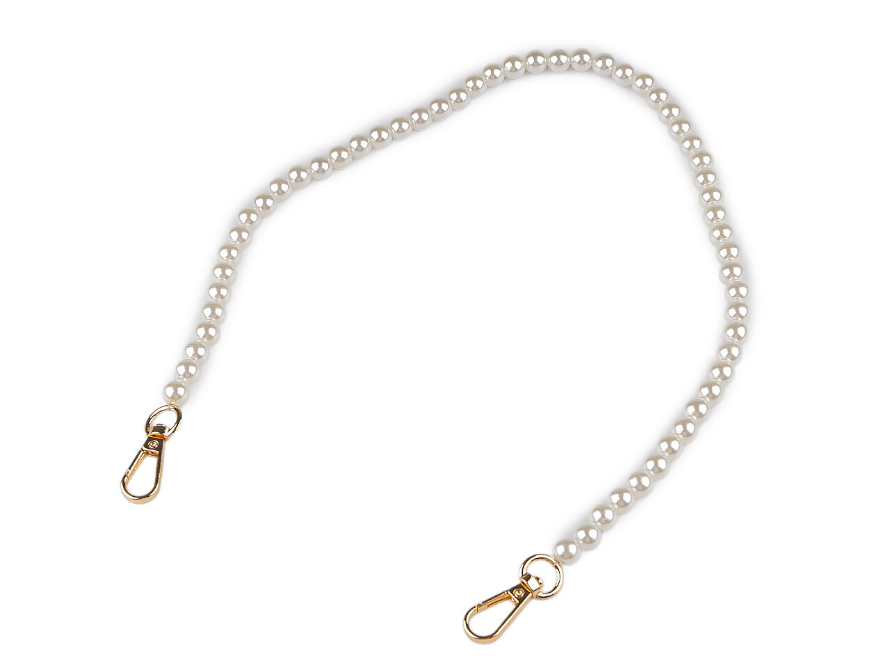 Perlový řetízek je elegantní a stylový doplněk pro každodenní nošení i pro speciální příležitosti. Skvěle se hodí k psaníčkům, menším kabelkám nebo pouzdrům na mobilní telefony. Můžete ho snadno připevnit díky praktickým karabinám.Perly jsou navlečené na ocelovém lanku. číst celé
