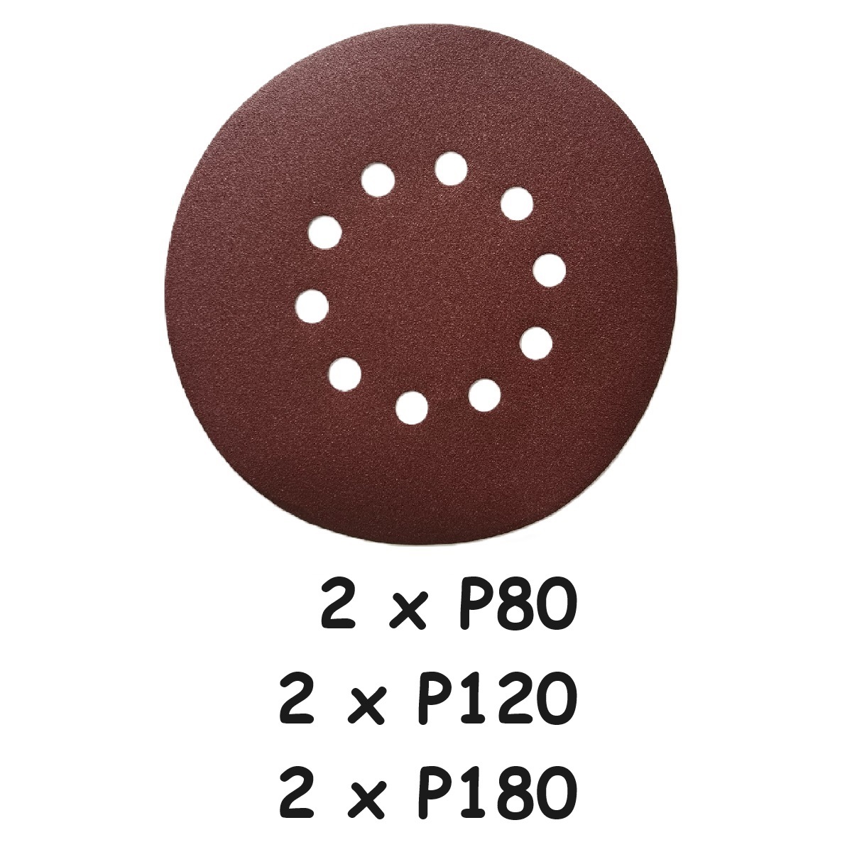 - 6 ks brusných papírů: 2× P80, 2× P120, 2× P180.