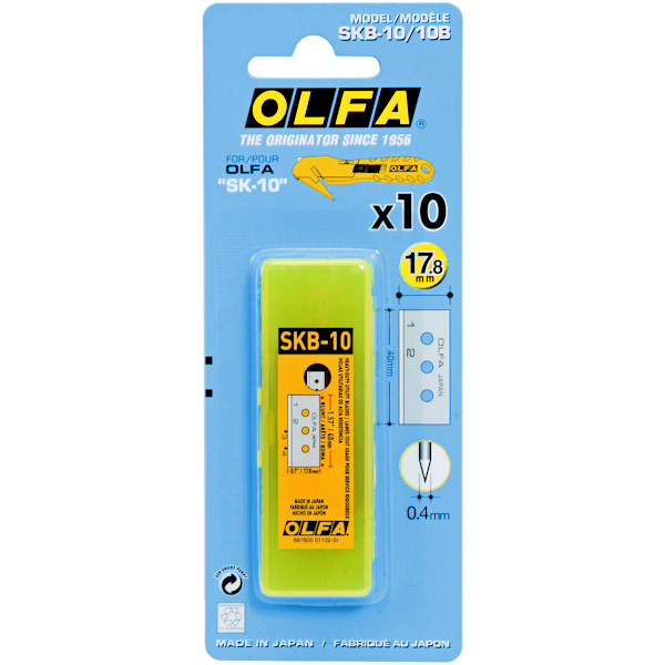 Ostrza dwustronne SKB-10 w plastikowym pudełku. Ostrza do 4-krotnego użycia w nożach bezpiecznych SK-10.op. blister z etui zawierającym 10 ostrzy.