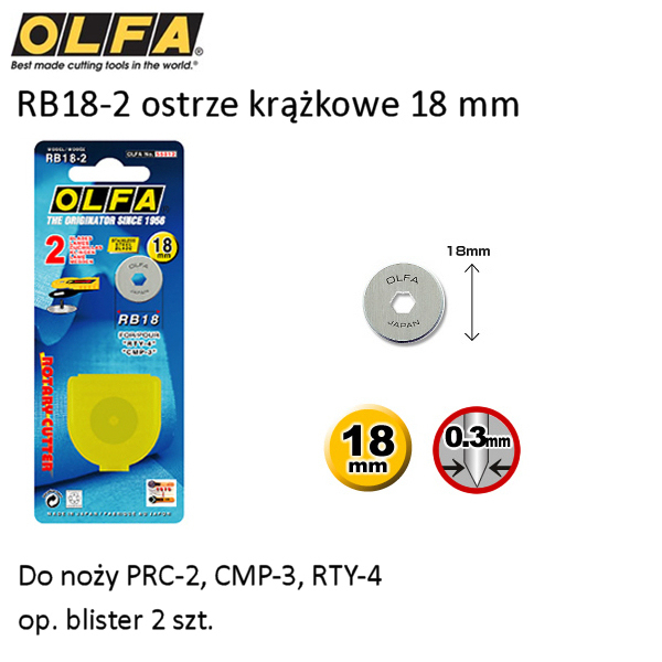 Ostrza krążkowe 18 mm do CMP-3 i RTY-4 blister 2 szt., OLFA