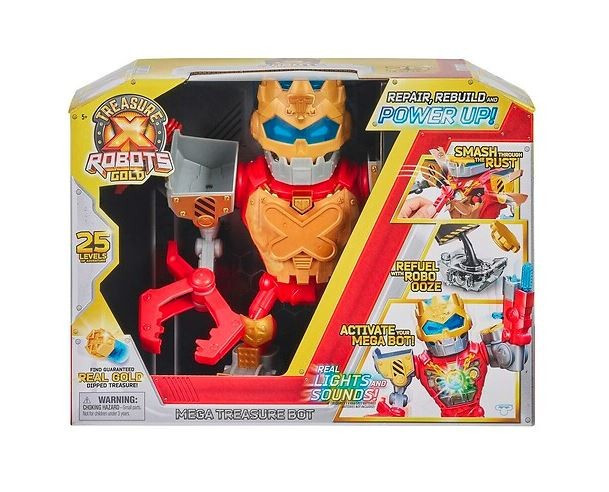 Przejdź przez 25 poziomów przygody. Naprawiaj, rozbudowuj i zasilaj swojego niesamowitego Mega Robota. Użyj narzędzia i przebij się przez rdzę Mega Robota, aby poznać wszystkie jego funkcje! W głowie Mega Robota odkryj wyjątkową figurkę Robota: Króla - Złota Korona. Zatankuj Robo Glutem swojego Mega Robota Skarbów. Aktywuj broń Robota i pomóż mu zmiażdżyć skrzynię, aby znaleźć w robotycznym osadzie, jego pokryty złotem rdzeń mocy. Umieść rdzeń mocy w Mega Robocie Skarbów, aby aktywować 40 świateł i dźwięków! Mnóstwo zabawy!